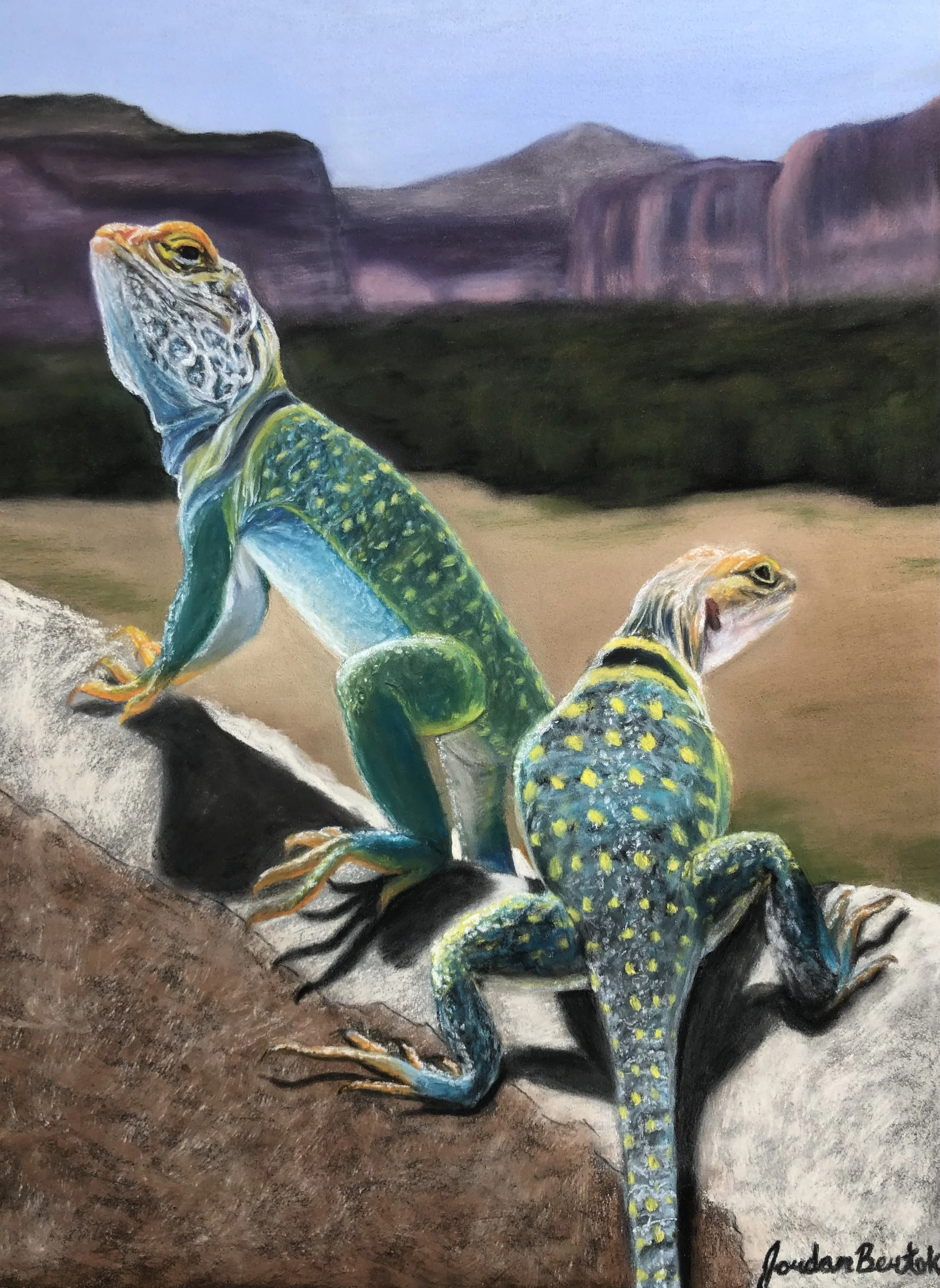 "Two Collared Lizards" - 9 x 12 inches, pastels